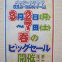 まだ雪が残っているところも見られますが、確実に暖かい日が増え、春が近づいている事を実感します。 いよいよパッケージプラザ高岡店・富山インター店にも春がやってきます。 「2026 春のビッグセール」開催です。 3月2日(月 …
