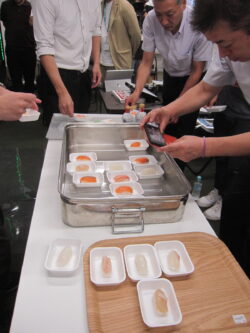 握り寿し、ホタルイカの沖漬けを試食していただき、味や食感の変化を実際に確かめていただき