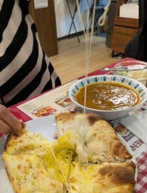 そして、熱々がすごくおいしくて、カレーにもピッタリなチーズナン。